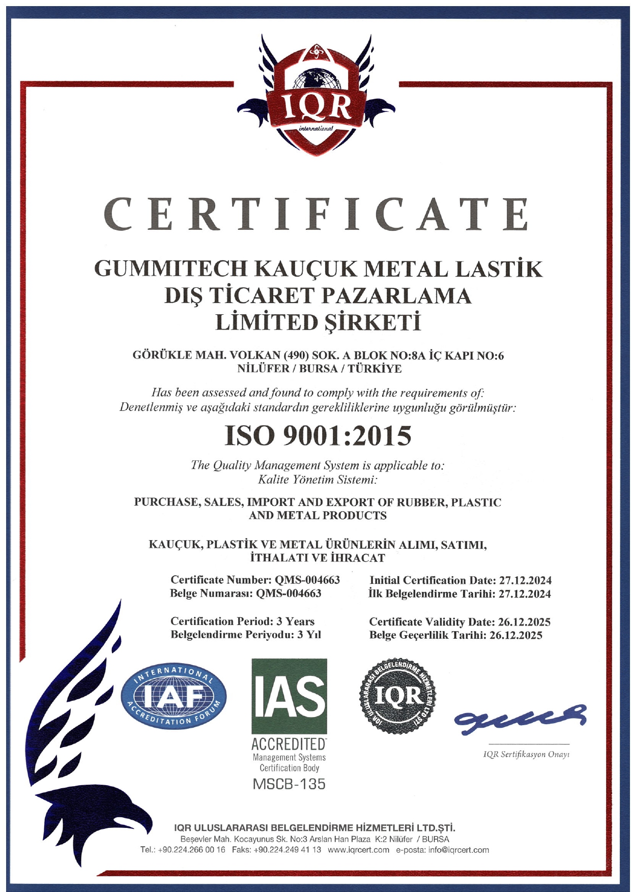SERTİFİKALARIMIZ